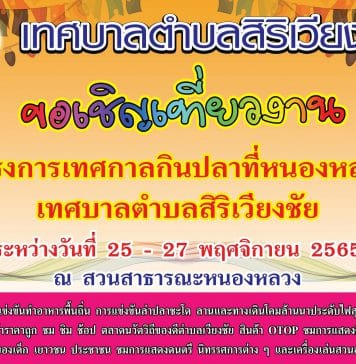 เทศบาลตำบลสิริเวียงชัย ขอเชิญชวนเที่ยวงาน “กินข้าวแลงแยงหนองหลวง” 25-27 พฤศจิกายน 2565 นี้